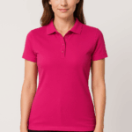 Model wykonany jest z wysokiej jakości 100% bawełny typu jersey (150 g/m²), która jest miękka, przewiewna i przyjemna w dotyku — idealna do noszenia przez cały dzień w pracy. Taliowany krój podkreśla kobiecą sylwetkę, a klasyczny kołnierzyk polo nadaje koszulce profesjonalny wygląd.
