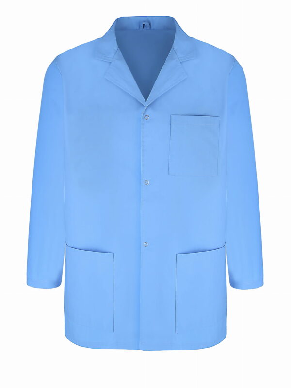 Klasyczny marynarka męska posiada trzy kieszenie, dwie kieszenie po boku na wysokości bioder i jedna na piersi. Marynarka medyczny zapinana jest na napy.
