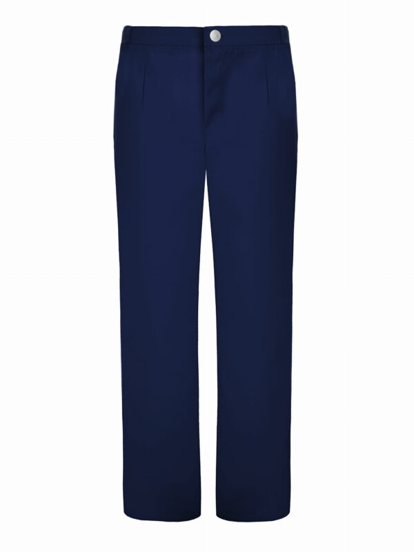 Spodnie medyczne męskie klasyczne z dwoma kieszeniami, zapięcie z przodu na zamek błyskawiczny, nad suwakiem zapięcie na guzik. Posiada gumkę po bokach, nogawki proste. Spodnie wykonano z tkaniny wysokiej jakości.
